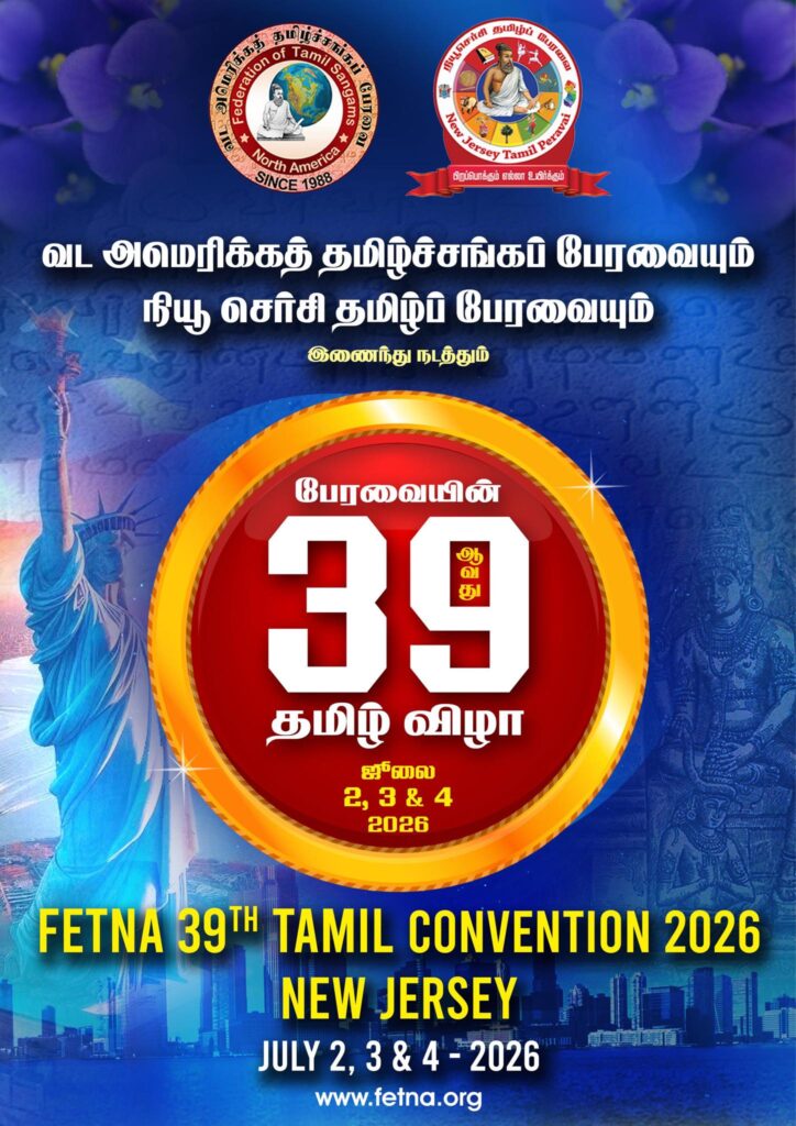 வட அமெரிக்கத் தமிழ்ச்சங்கப் பேரவையும், நியூசெர்சி தமிழ்ப் பேரவையும் இணைந்து நடத்தும், பேரவையின் “39வது தமிழ் விழா”, அடுத்த ஆண்டு-2026 ஆம் ஆண்டு, சூலை 2, 3, 4 ஆகிய நாட்களில் நியூ செர்சி மாநிலத்தில் நடைபெற உள்ளது.